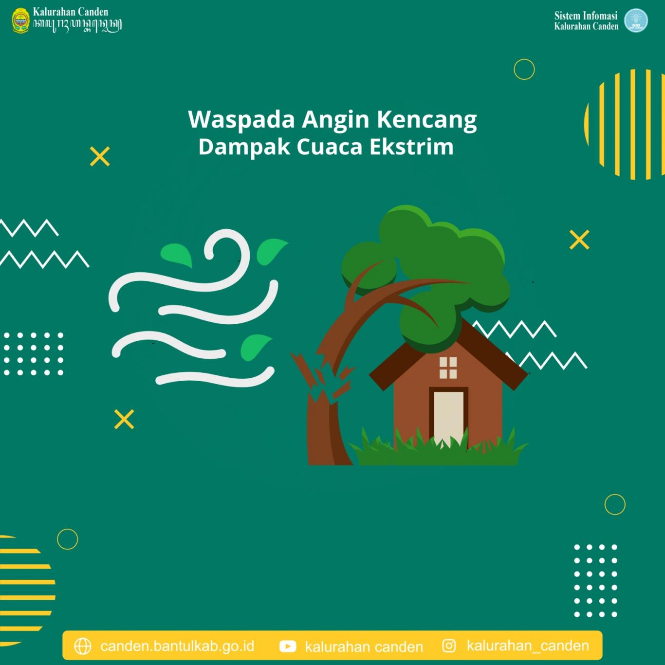Cuaca ekstrim beberapa hari ini melanda Yogayakarta dengan di tandai adanya angin yang lumayan kencang, hal ini disebabkan oleh perubahan musim yang akan terjadi pada bulan Oktober ini. Salah satu dampak dari angin kencang yaitu pohon roboh yang menimpa salah satu rumah di Jiwan Dk Ngibikan RT 001, Canden, Jetis, Bantul. Kejadian ini langsung ditanggapi dengan rekan-rekan FPRB Kalurahan Canden dengan pembersihan pohon yang tumbang. Untuk itu, Kalurahan Canden menghimbau agar seluruh warga untuk tetap berhati-hati dengan adanya fenomena ini diharapkan warga untuk dapat melaksanakan mitigasi bencana dengan cara memotong pohon di lingkungan masing-masing yang sekiranya membahayakan jika terkena angin kencang.