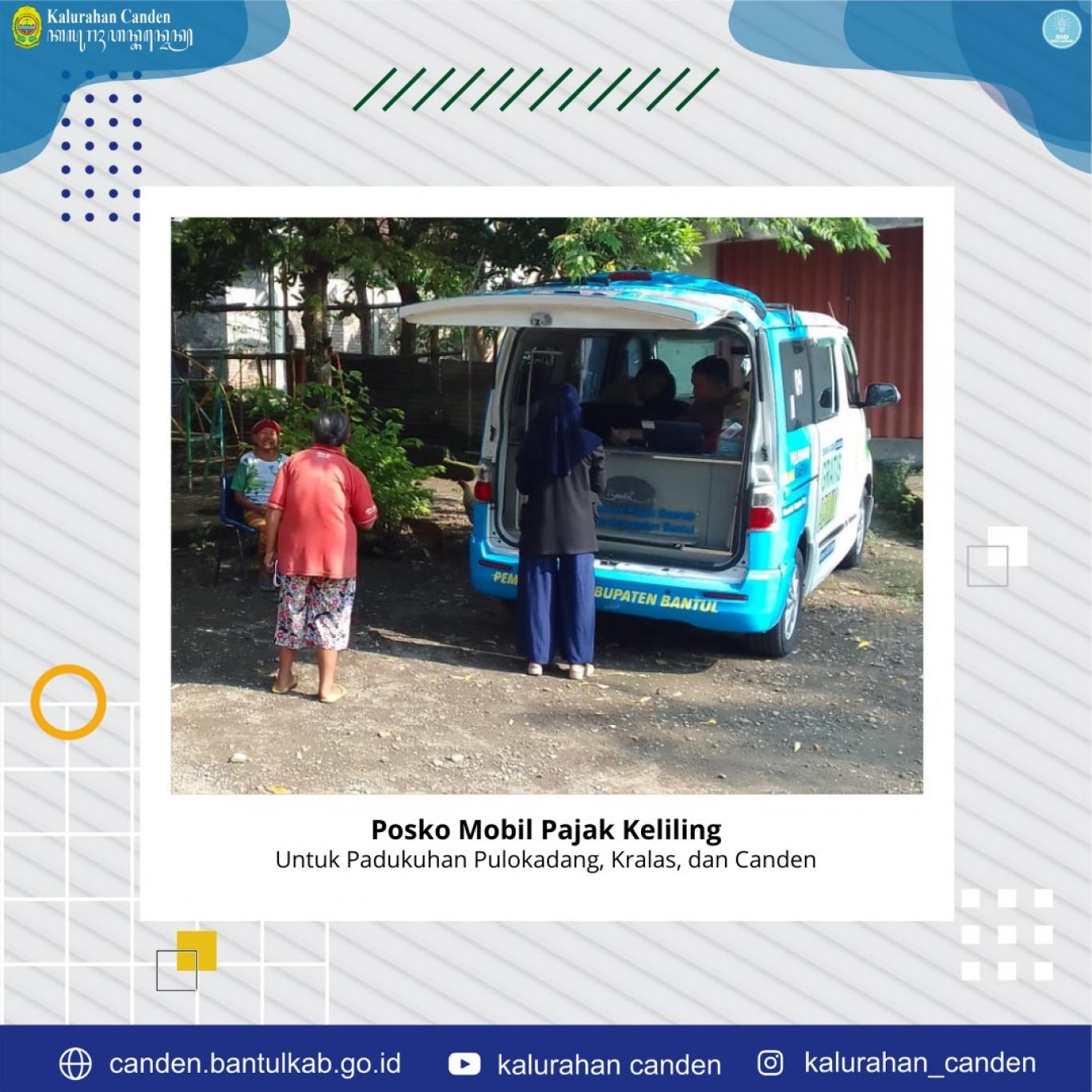 Pelayanan Mobil Pajak Keliling Kalurahan Canden, untuk hari pertama ini pelayanan mobil pajak akan hadir di Padukuhan Pulokadang, Kralas, dan Canden. Ayok taat pajak, untuk tahun ini jatuh tempo pembayaran pajak akan sampai dengan 31 Juli 2025.