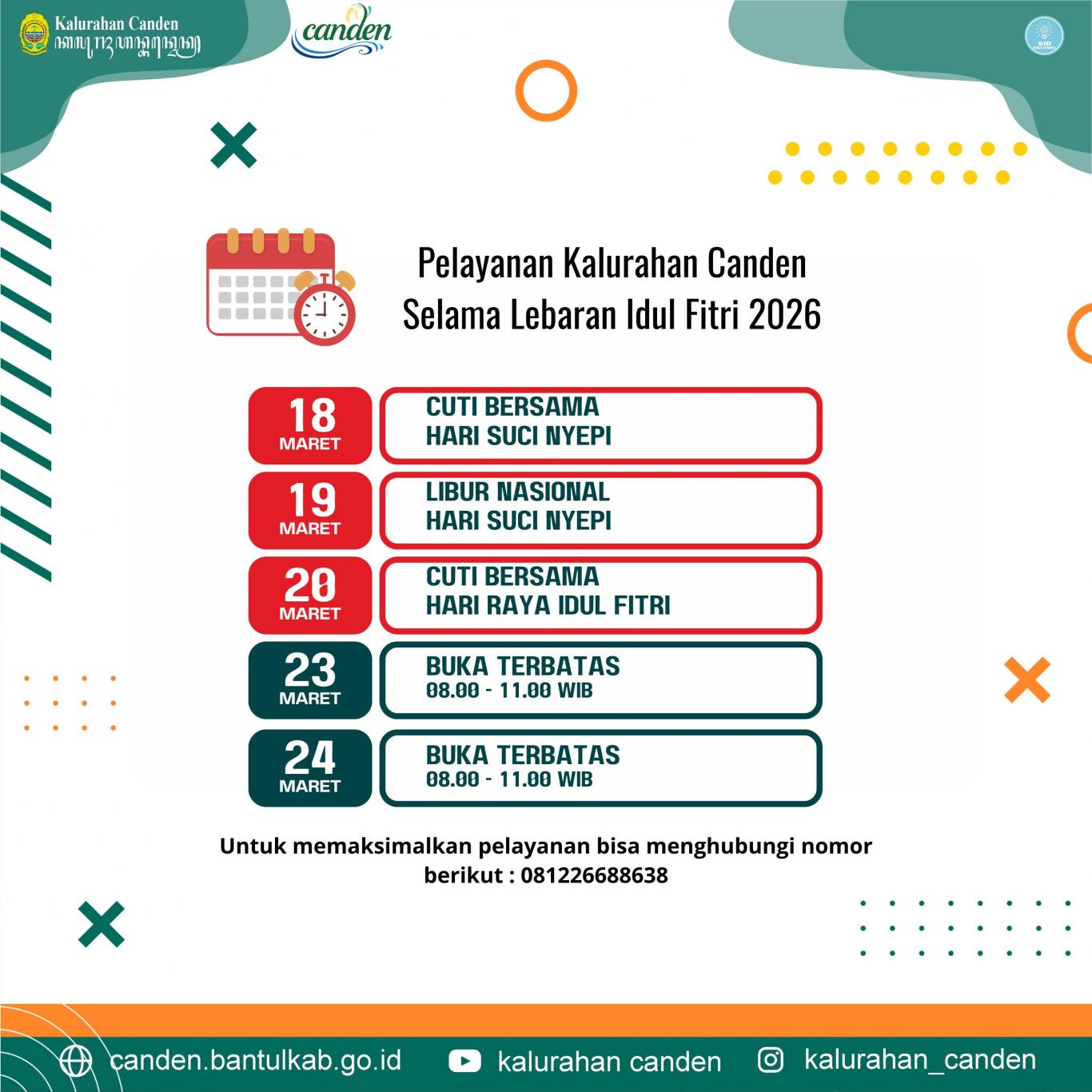 Jadwal pelayanan Kalurahan Canden selama Lebaran tahun 2026.